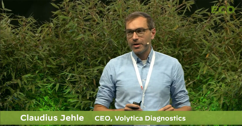 Claudius Jehle pitches Volytica Diagnostics at Ecosummit Berlin 23-24 June 2022. The Dresden-based startup analyses battery data to understand remaining lifetime and other key values that help optimise the economics and sustainability of batteries.